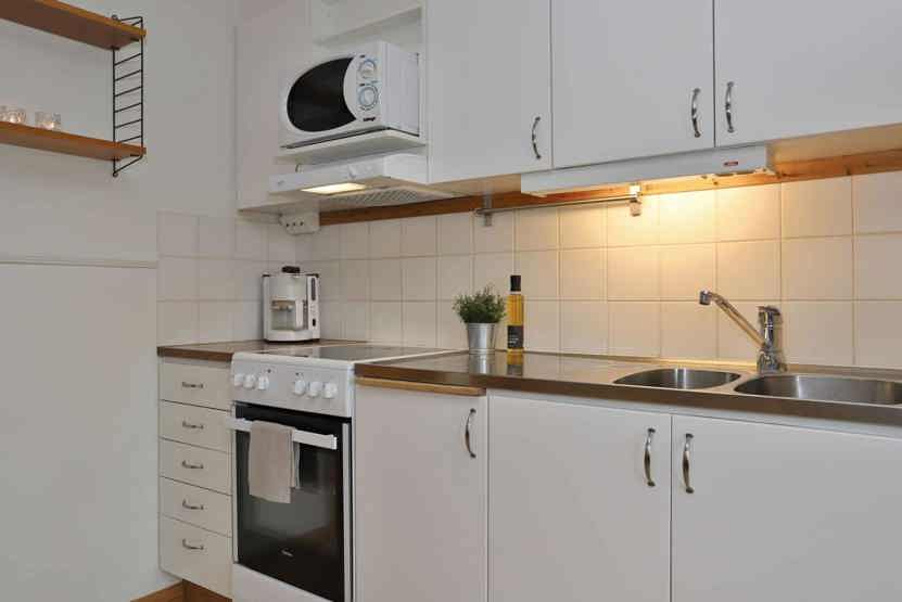 Køkkenet indeholder elkomfur med ovn, køleskab med fryser, opvaskemaskine, mikro.