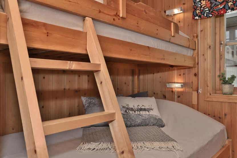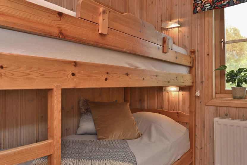 Soveværelse-1 = 1 dobbeltseng. Soveværelse-2 = 1 køjeseng med 120 cm bred underkøje. Soveværelse-3 = 1 køjeseng.