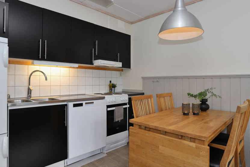 TV, balkon (der skovles ikke sne), tørreskab, skiopbevaring, 1 parkeringsplads med motorvarmere.