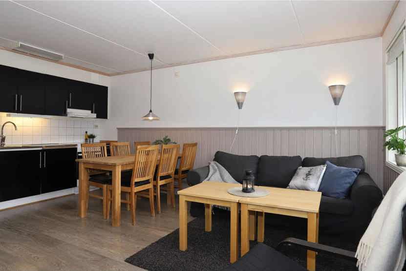Stue med køkkenafdeling.