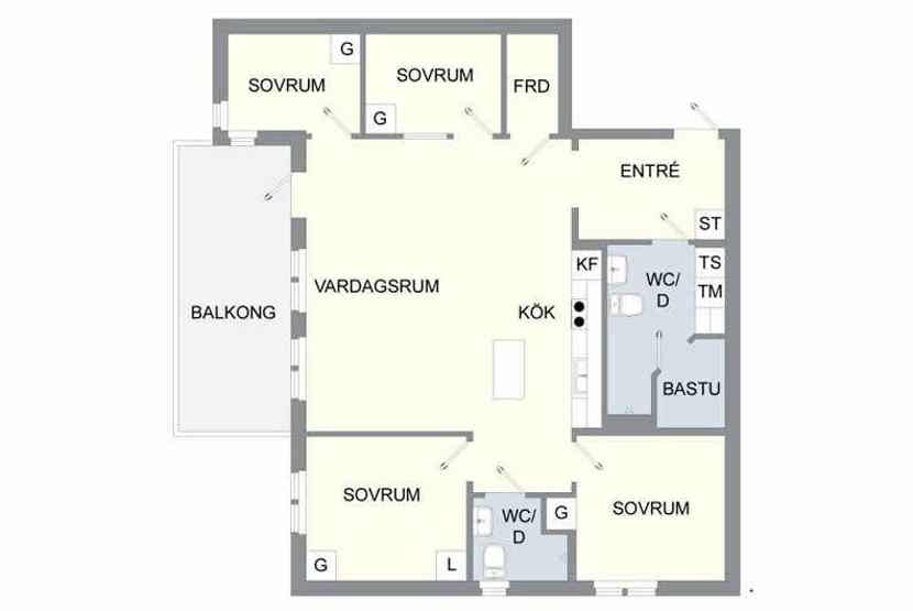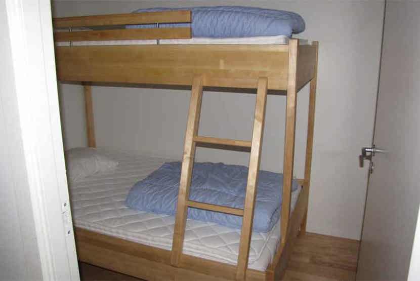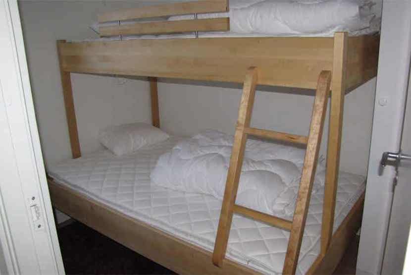 Soveværelse-1 = 1 dobbeltseng som kan laves om til to enkeltsenge. Soveværelse-2 = 1 dobbeltseng som kan laves om til to enkeltsenge. Soveværelse-3 = 1 køjeseng med 120 cm bred underkøje. Soveværelse-4 = 1 køjeseng med 120 cm bred underkøje, soveværelse uden vinduer.