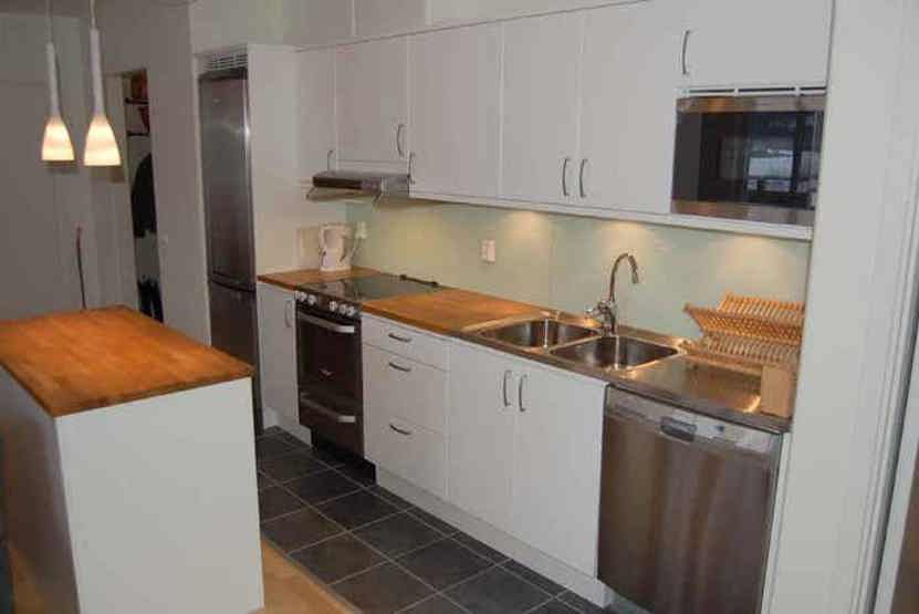 Køkkenet indeholder elkomfur med ovn, køleskab med fryser, opvaskemaskine, mikro.