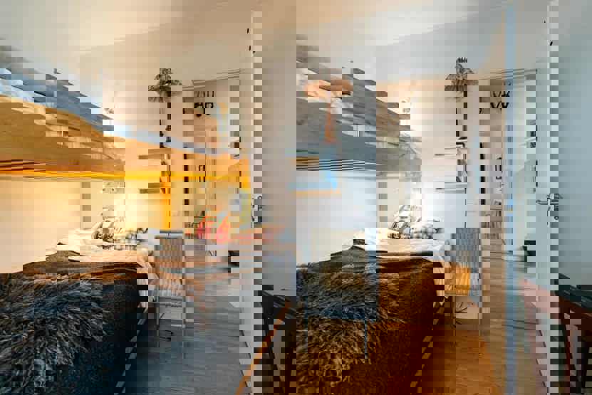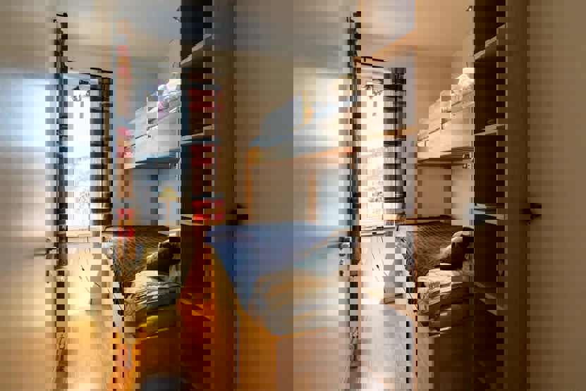 Soveværelse-1 = 1 dobbeltseng som kan laves om til to enkeltsenge. Soveværelse-2 = 1 køyeseng med 140 cm bred underkøye og 90 cm bred overkøye. Soveværelse-3 = 1 køyeseng med 120 cm bred underkøye og 80 cm bred overkøye.