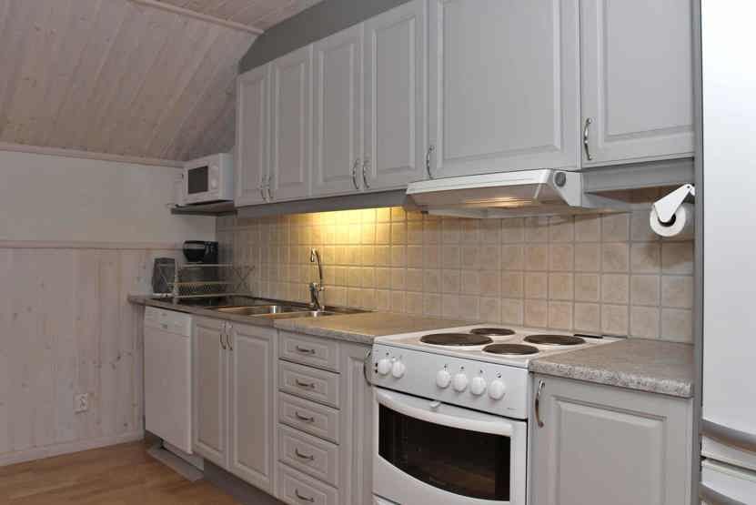 Køkkenet indeholder elkomfur med ovn, køleskab med fryser, opvaskemaskine, mikro.