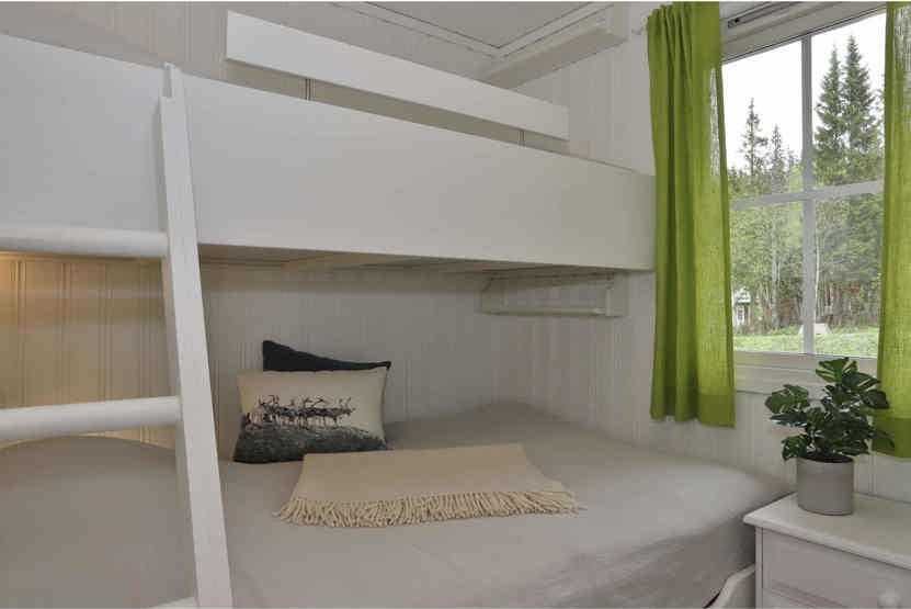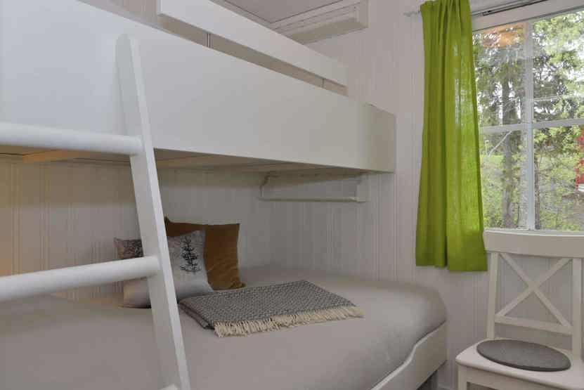 Soveværelse-1 = 1 køyeseng med 120 cm bred underkøye og 90 cm bred overkøye. Soveværelse-2 = 1 køyeseng med 140 cm bred underkøye og 90 cm bred overkøye.