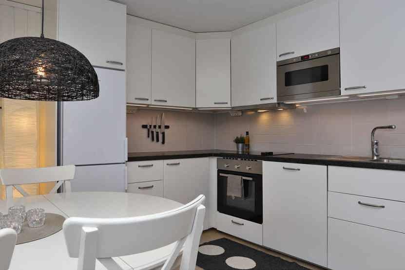 Stue med køkkenafdeling.