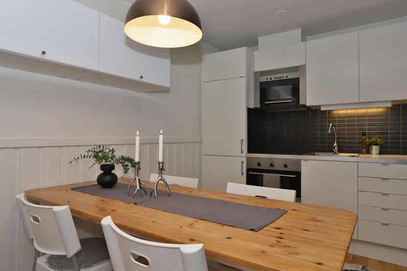 Stue med køkkenafdeling.