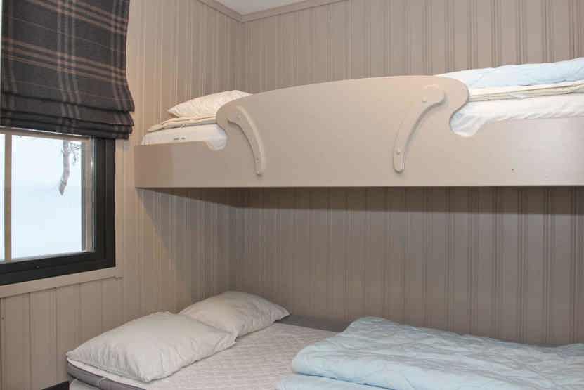 Soveværelse-1 = 1 køjeseng med 120 cm bred underkøje. Soveværelse-2 = 1 køjeseng med 140 cm bred underkøje.