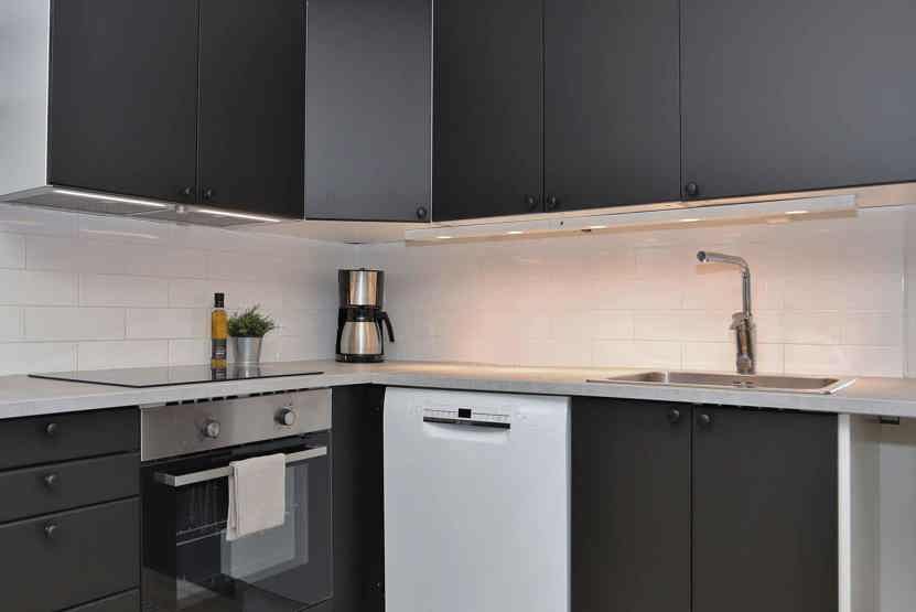 Køkkenet indeholder elkomfur med ovn, køleskab med fryser, mikro.