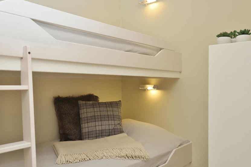 Soveværelse-1 = 1 køyeseng med 120 cm bred underkøye og 90 cm bred overkøye. Soveværelse-2 = 1 køjeseng.