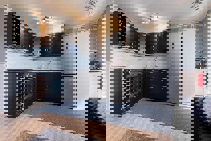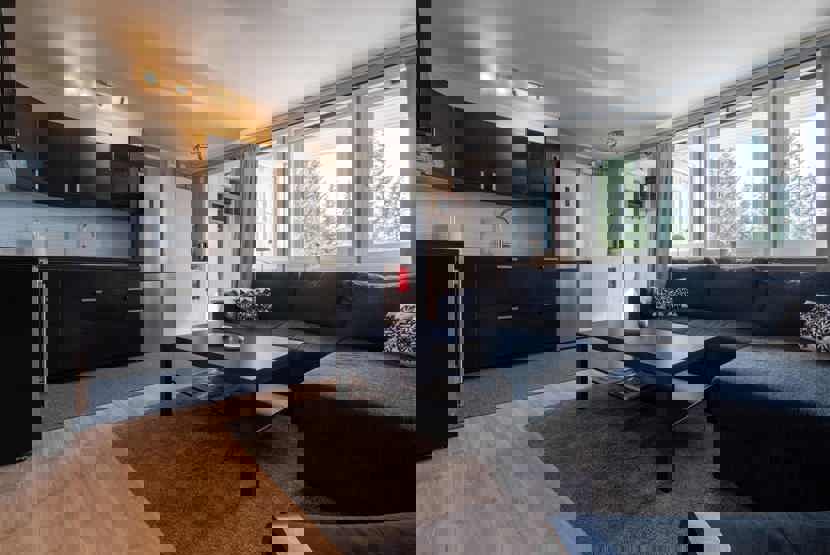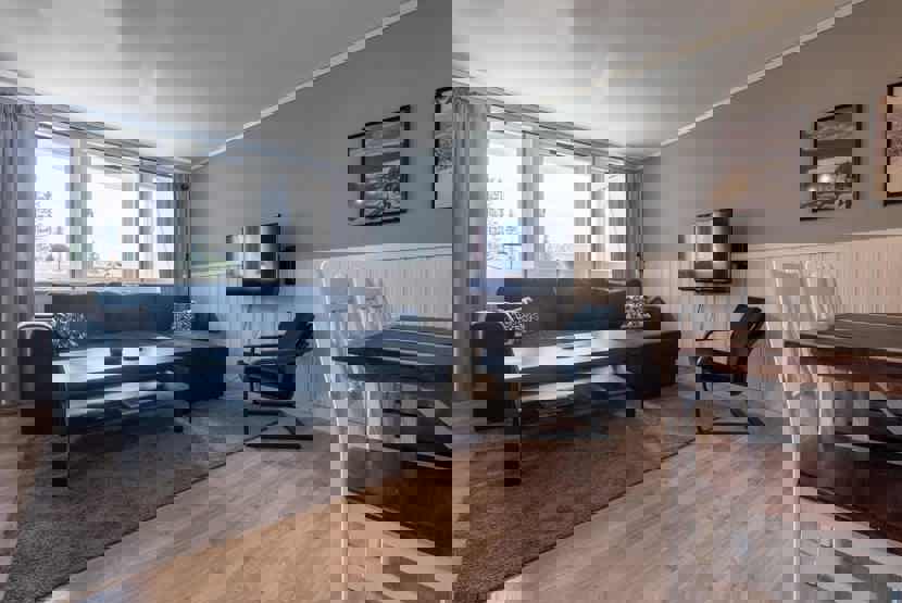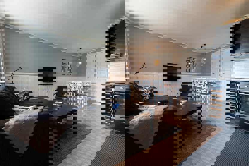 Stue med køkkenafdeling.