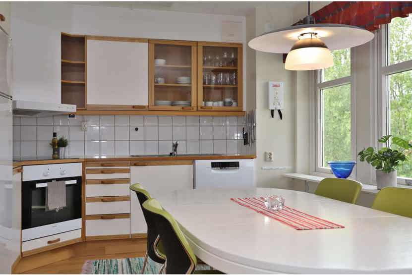 Køkkenet indeholder elkomfur med ovn, køleskab med fryser, opvaskemaskine, mikro.