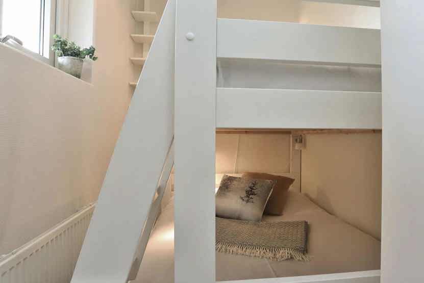 Soveværelse-1 = 1 dobbeltseng. Soveværelse-2 = 1 køjeseng med 120 cm bred underkøje.