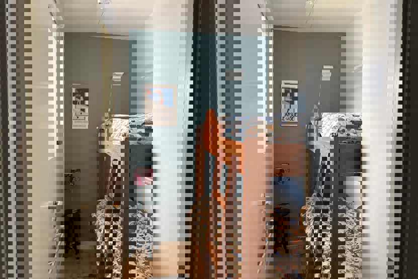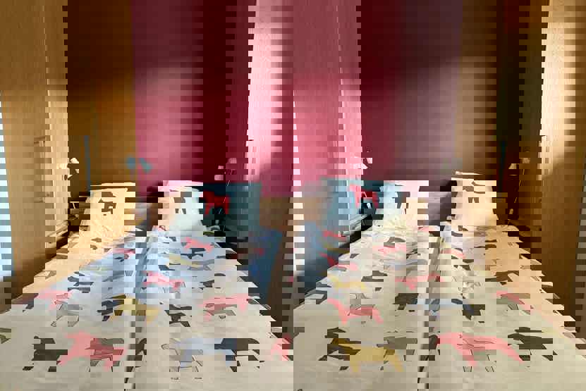 Soveværelse-1 = 1 dobbeltseng 180 cm bred. Soveværelse-2 = 1 køjeseng med 90 cm bred underkøje og 80 cm bred overkøje.