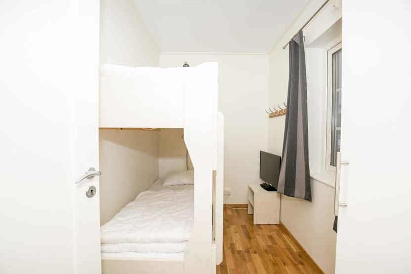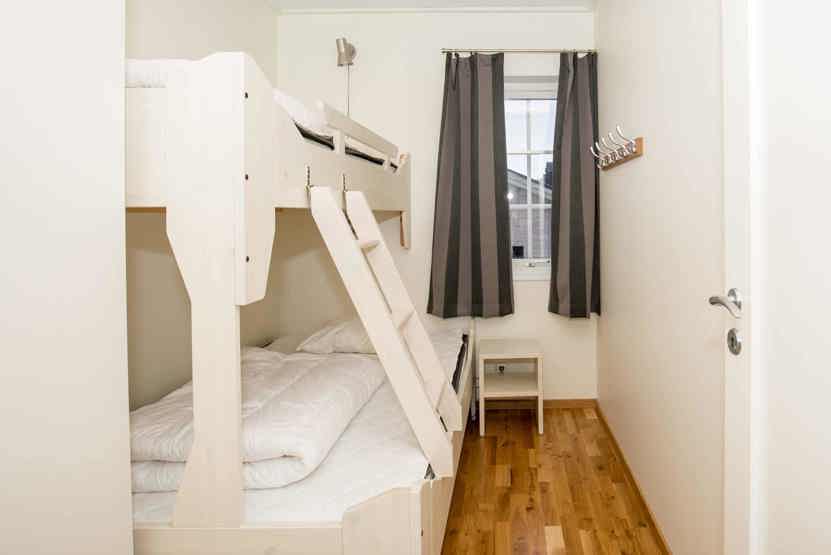 Soveværelse-1 = 1 dobbeltseng. Soveværelse-2 = 1 køjeseng med 120 cm bred underkøje og 80 cm bred overkøje. Soveværelse-3 = 1 køjeseng.