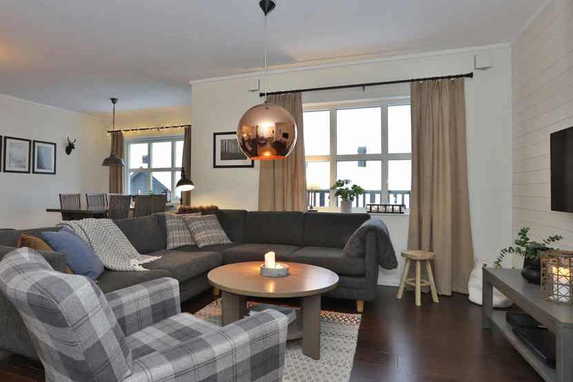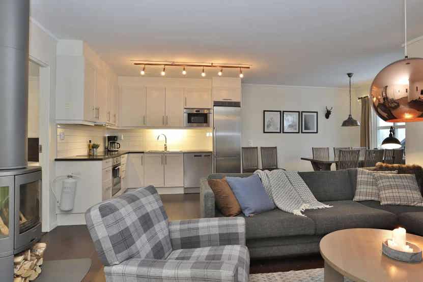 brændeovn (brænde indgår ikke), vaskemaskine, balkon (der skovles ikke sne), TV, skiopbevaring, 1 parkeringsplads med motorvarmere, adgang til elbilopladere med type 2 stik mod betaling.
