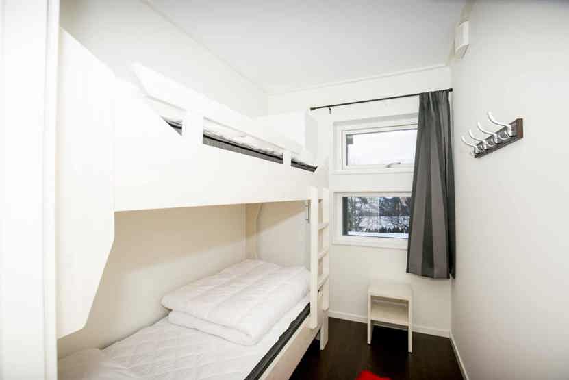 Soveværelse-1 = 1 dobbeltseng. Soveværelse-2 = 1 køjeseng med 120 cm bred underkøje og 80 cm bred overkøje. Soveværelse-3 = 1 køjeseng.