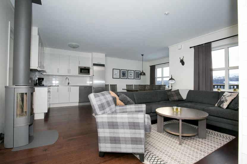 brændeovn (brænde indgår ikke), vaskemaskine, balkon (der skovles ikke sne), TV, skiopbevaring, 1 parkeringsplads med motorvarmere.