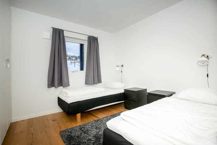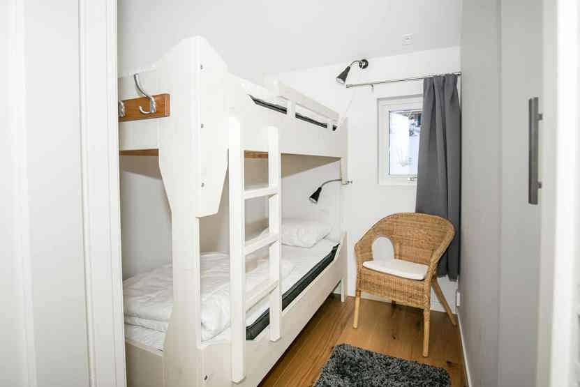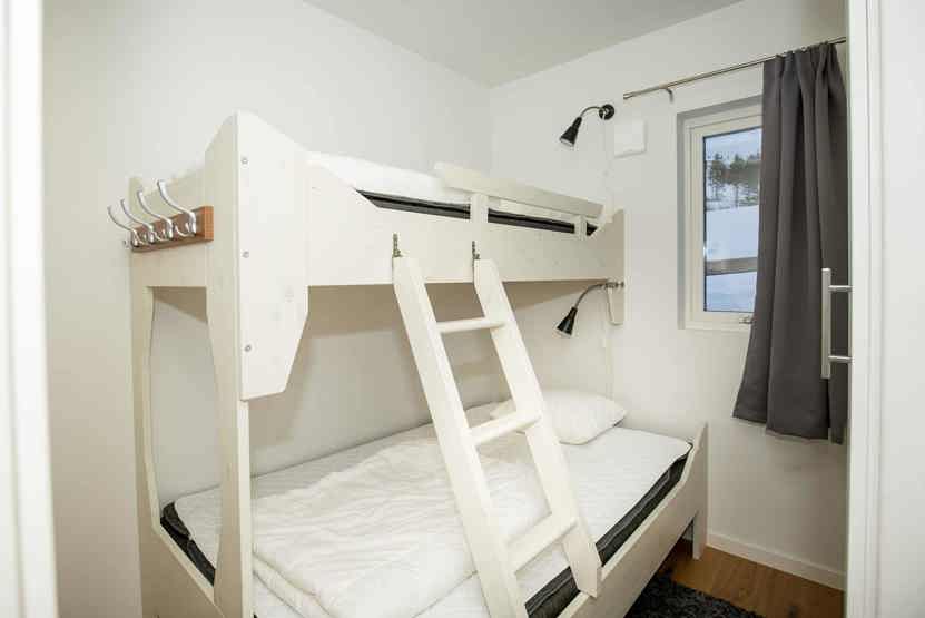 Soveværelse-1 = 1 dobbeltseng. Soveværelse-2 = 2 enkeltsenge. Soveværelse-3 = 1 køjeseng. Soveværelse-4 = 1 køjeseng med 120 cm bred underkøje og 80 cm bred overkøje.
