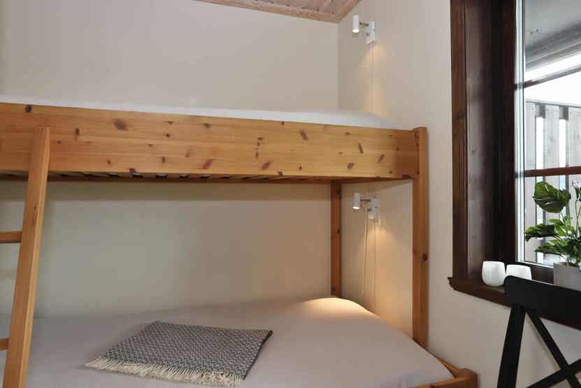 Soveværelse-1 = 1 dobbeltseng. Soveværelse-2 = 1 køjeseng med 120 cm bred underkøje.