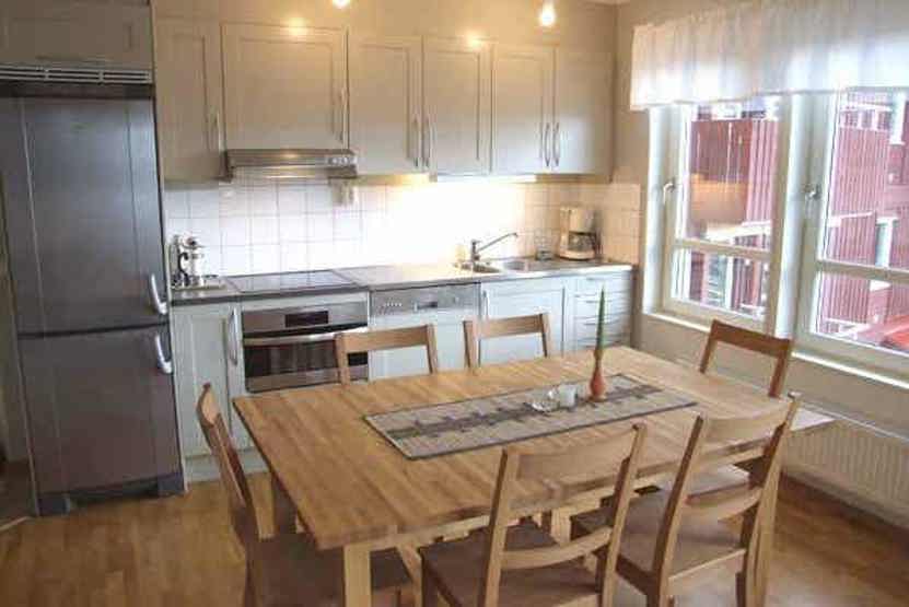 Slalomsvängen ligger i Åre By. Lejlighed på 3 etage, 4+1 sengepladser, 49 kvm, alrum med køkkenafdeling, 2 soveværelse, 1 bruser, 1 WC, sauna.