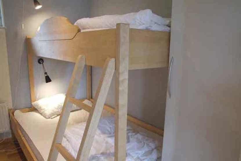 Soveværelse-1 = 1 dobbeltseng. Soveværelse-2 = 1 køjeseng med 120 cm bred underkøje.