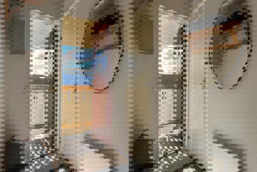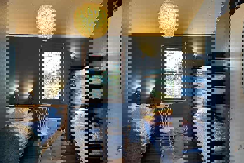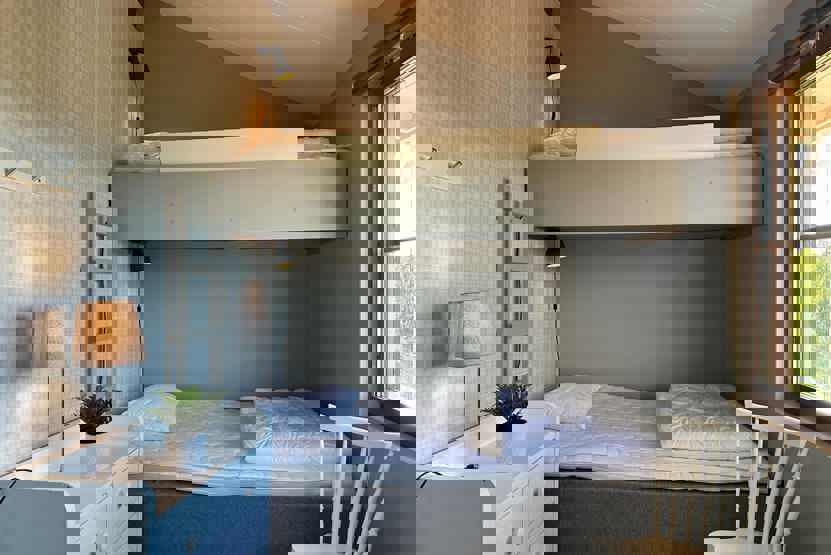 Soveværelse-1 = 1 køjeseng hvor både over og underkøje er 80 cm bred, 1 enkeltseng 120 cm bred. Soveværelse-2 = 1 enkeltseng 120 cm bred samt en pullmanseng. Soveværelse-3 = 1 enkeltseng 140 cm bred.