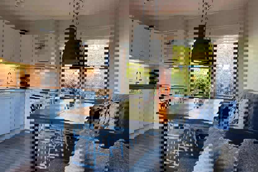Køkkenet indeholder elkomfur med ovn, køleskab med fryser, opvaskemaskine, mikro.