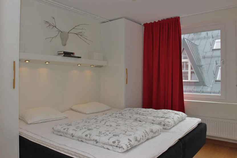 Soveværelse-1 = 1 dobbeltseng. Soveværelse-2 = 1 køyeseng med 120 cm bred underkøye og 90 cm bred overkøye.