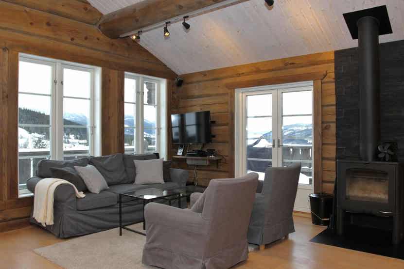 TV, brændeovn (brænde indgår ikke), vaskemaskine, tørreskab, altan, skiopbevaring, 1 parkeringsplads med motorvarmere.