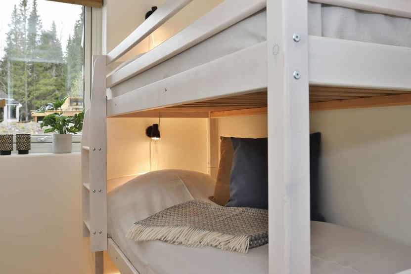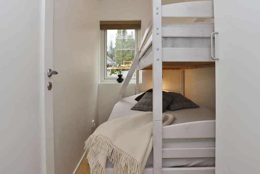 Soveværelse-1 = 1 dobbeltseng 160 cm bred. Soveværelse-2 = 1 køjeseng med 120 cm bred underkøje og 80 cm bred overkøje. Soveværelse-3 = 1 køjeseng hvor både over og underkøje er 80 cm bred.