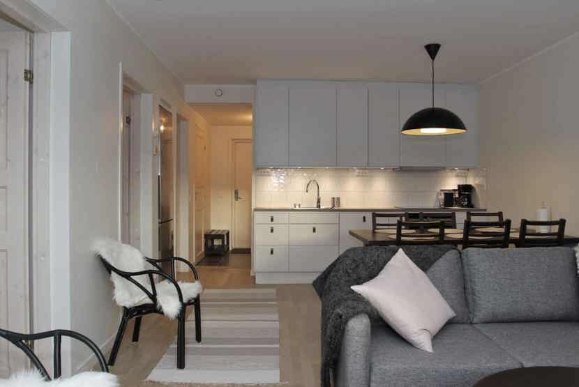 Stue med køkkenafdeling.