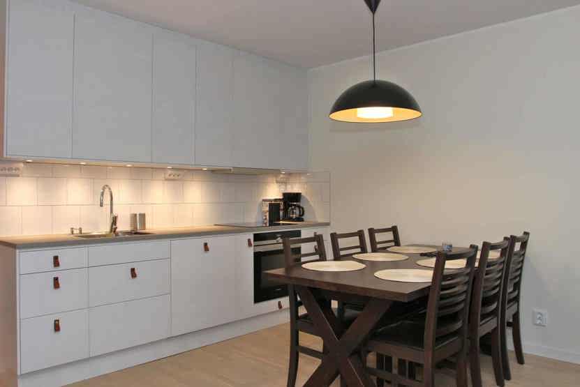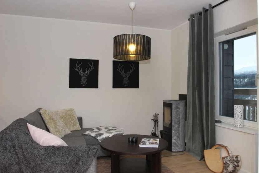 TV, brændeovn (brænde indgår ikke), vaskemaskine, tørreskab, balkon (der skovles ikke sne), skiopbevaring, 1 parkeringsplads med motorvarmere.