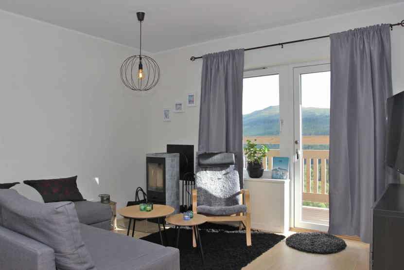 TV, brændeovn (brænde indgår ikke), vaskemaskine, tørreskab, balkon (der skovles ikke sne), skiopbevaring, Havemøbler, 1 parkeringsplads med motorvarmere.