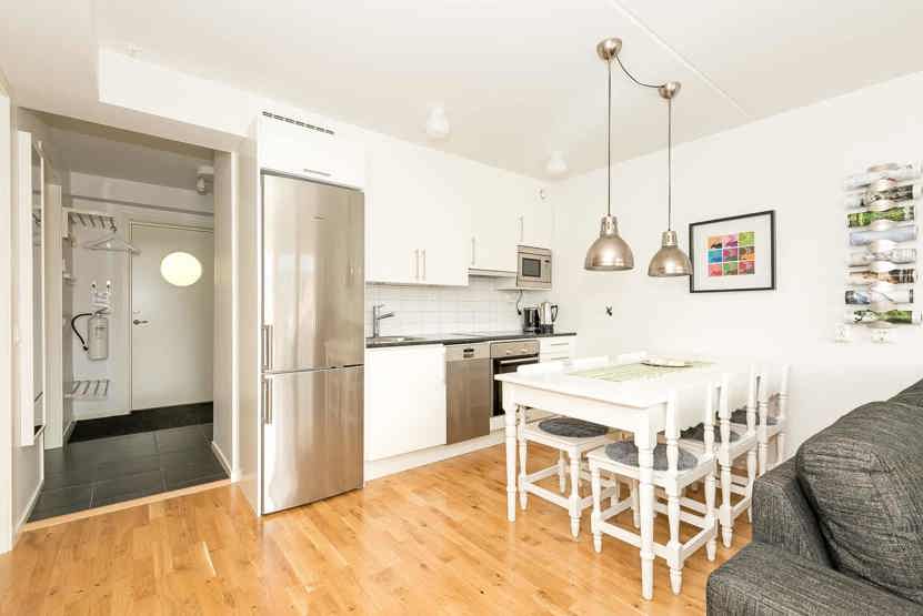 Stue med køkkenafdeling.