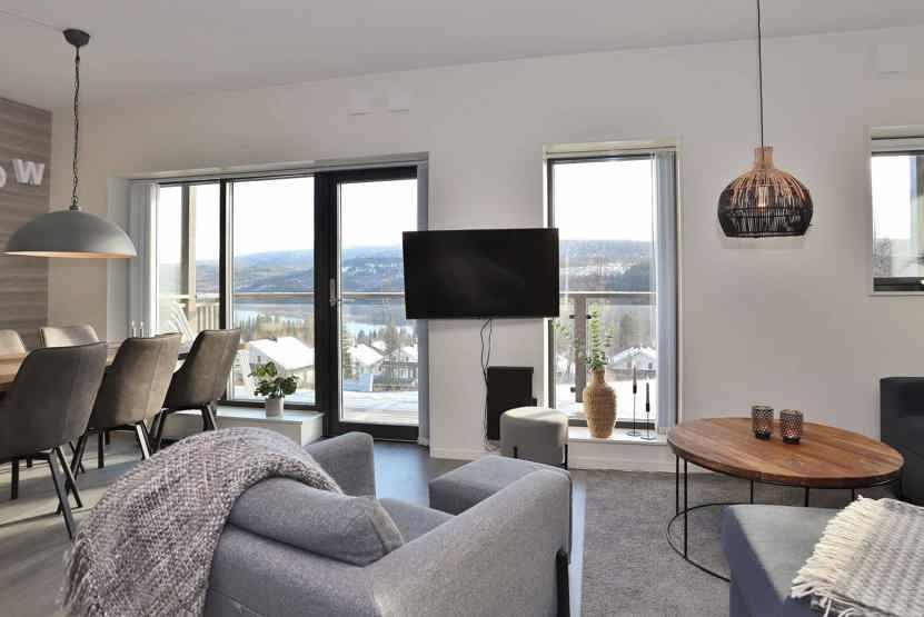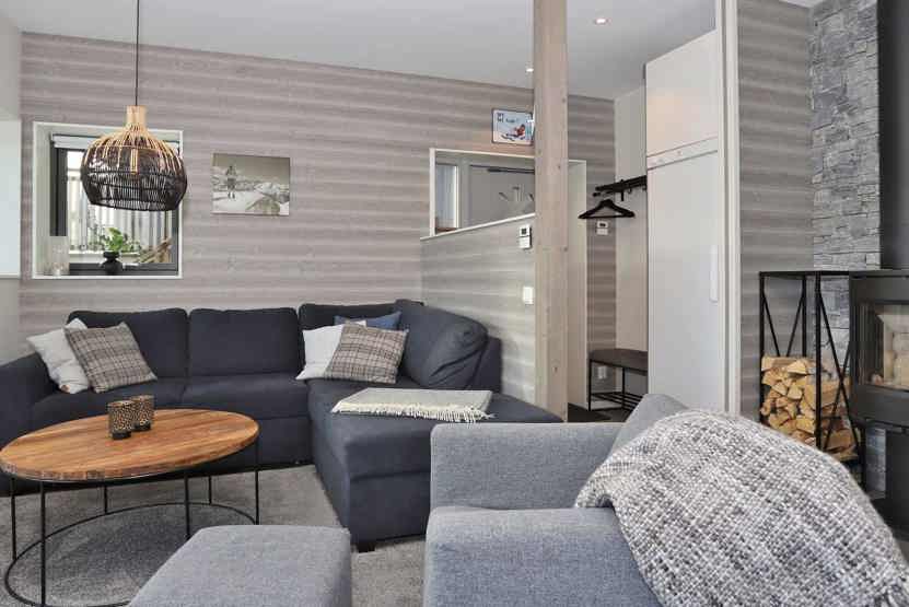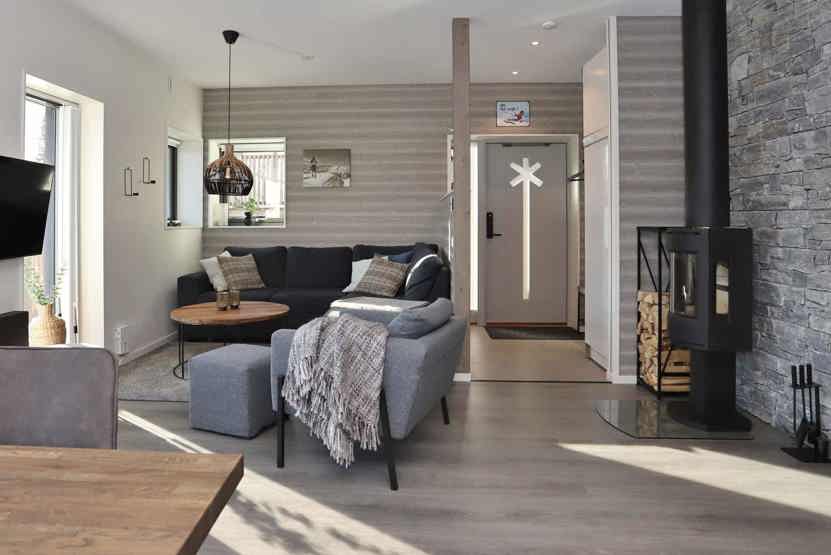 TV, brændeovn (brænde indgår ikke), vaskemaskine, tørreskab, altan, skiopbevaring, 1 parkeringsplads med motorvarmere.