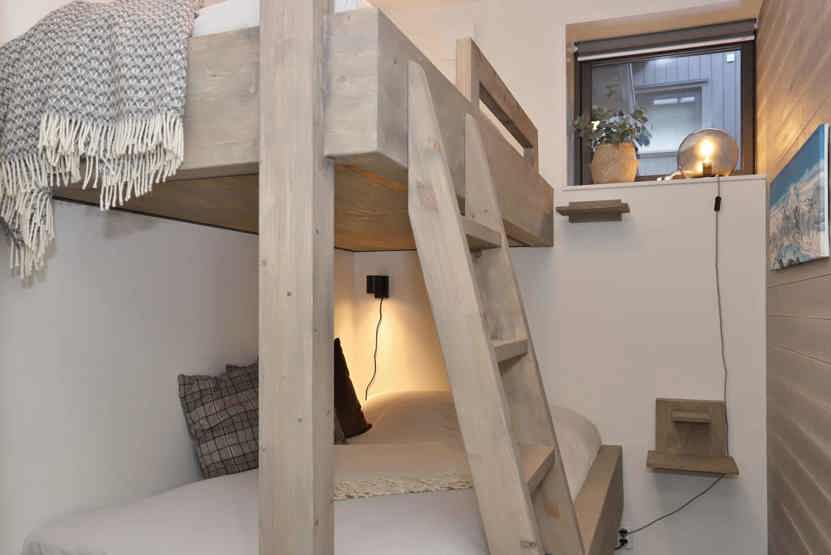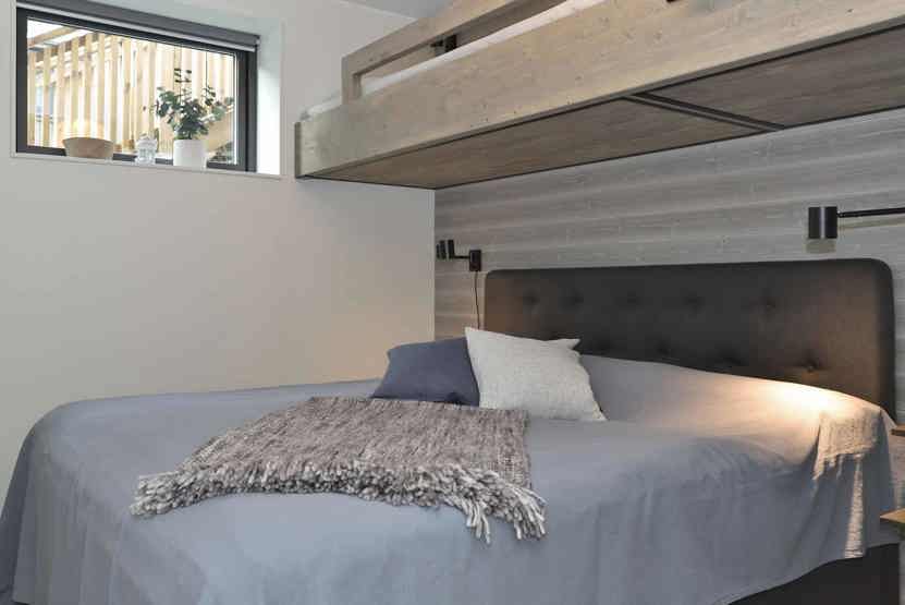 Soveværelse-1 = 1 dobbeltseng, 2 overkøjer. Soveværelse-2 = 1 køyeseng med 120 cm bred underkøye og 90 cm bred overkøye.