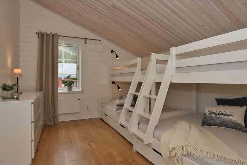 Soveværelse-1 = 1 dobbeltseng. Soveværelse-2 = 1 dobbeltseng. Soveværelse-3 = 2 køjesenge med 120 cm bred underkøje.