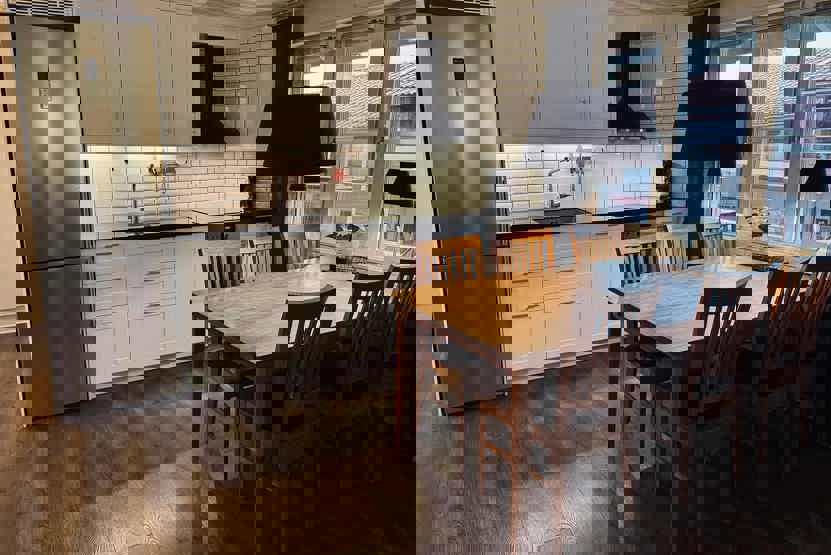 Køkkenet indeholder elkomfur med ovn, køleskab med fryser, opvaskemaskine, mikro.