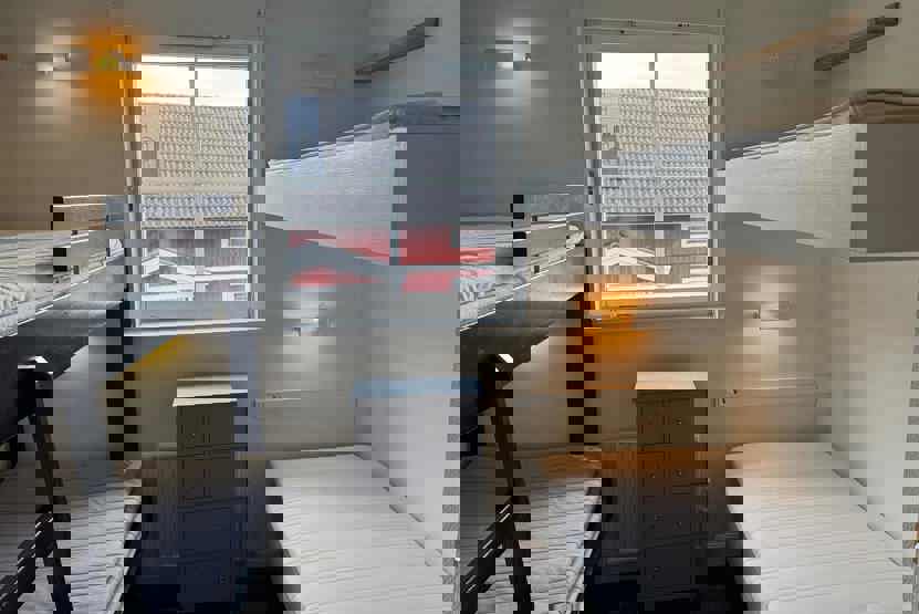 Soveværelse-1 = 1 dobbeltseng 160 cm bred. Soveværelse-2 = enkeltsenge 80 cm bred, 1 køjeseng med 90 cm bred underkøje og 80 cm bred overkøje.