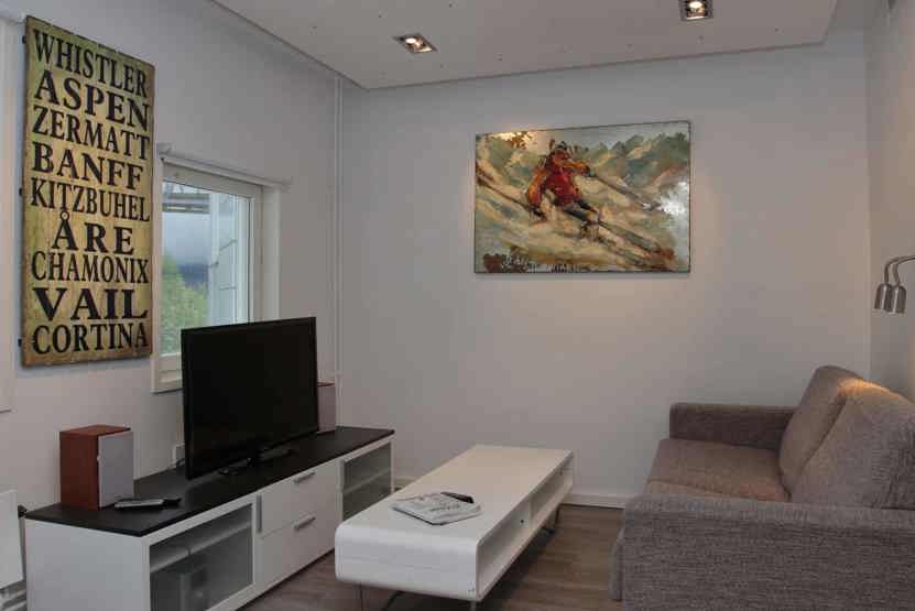 Stue med lille køkkenafdeling. TV, Betalingsparkering med begrænset antal pladser, kan ikke bookes på forhånd, Garage kan bookes på forhånd på www.aimopark.se, elevator findes i huset.