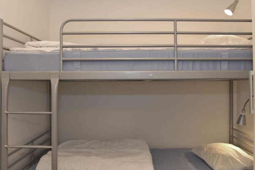 Soveværelse-1 = 2 enkeltsenge 80 cm bred. Alkove 1 =1 køjeseng hvor både over og underkøje er 90 cm bred, I alkove uden vindue.