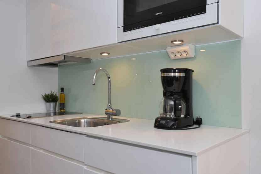 Køkkenet indeholder tekøkken med 2 kogeplader, kun til lettere madlavning, køleskab, mikro.