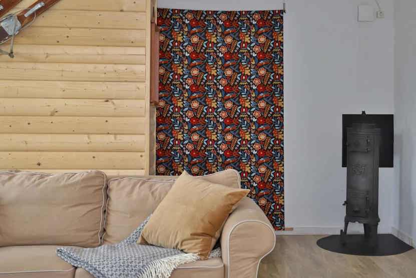 Stue med køkkenafdeling, brændeovn (brænde indgår ikke). TV, brændeovn (brænde indgår ikke), tørreskab, skiopbevaring, altan.