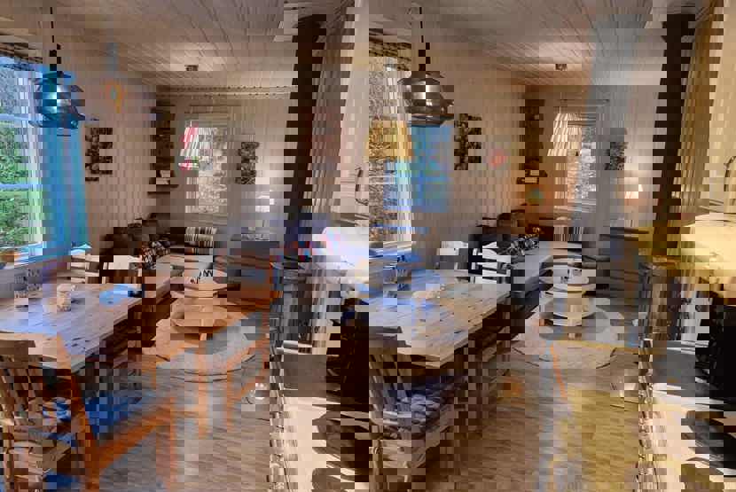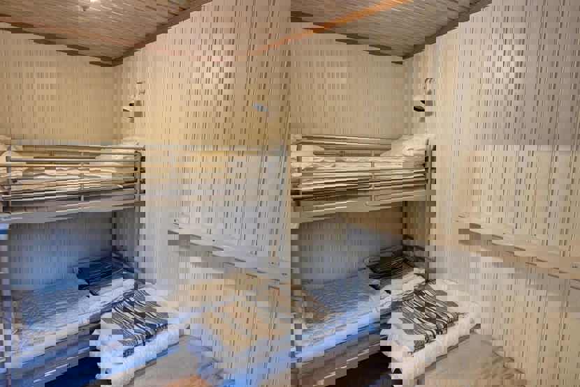 Soveværelse-1 = 1 dobbeltseng 160 cm bred. Soveværelse-2 = 1 enkeltseng, 1 køjeseng hvor både over og underkøje er 90 cm bred.