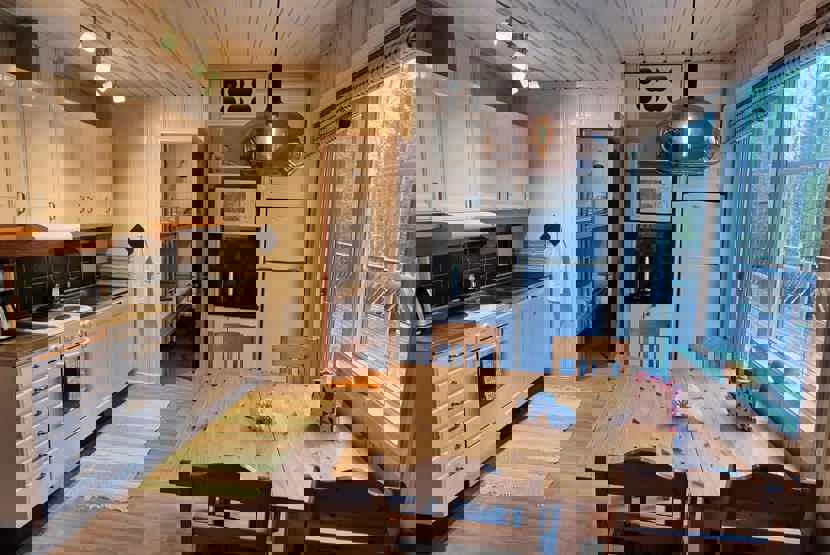 Køkkenet indeholder elkomfur med ovn, køleskab med fryser, opvaskemaskine, mikro.