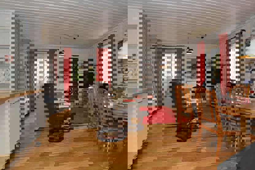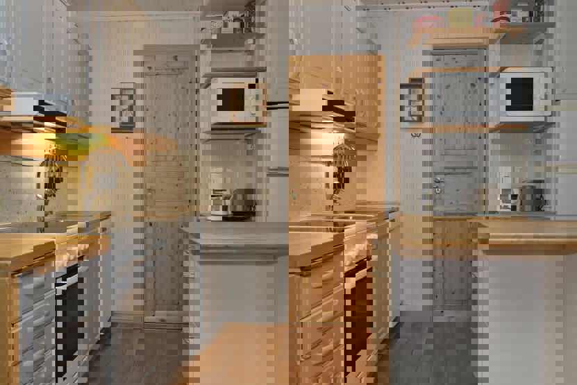 Stue med køkkenafdeling.