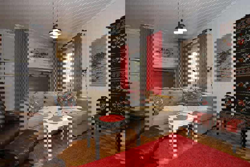 TV, brændeovn (brænde indgår ikke), vaskemaskine, tørreskab, altan, skiopbevaring, 1 parkeringsplads med motorvarmere.