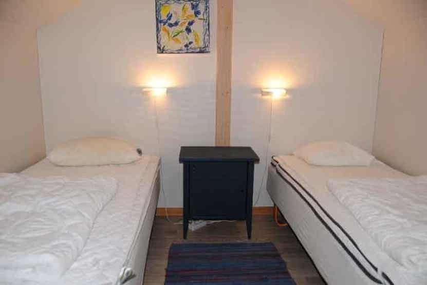 Soveværelse-1 = 1 dobbeltseng som kan laves om til to enkeltsenge. Soveværelse-2 = 1 køjeseng med 105 cm bred underkøje.