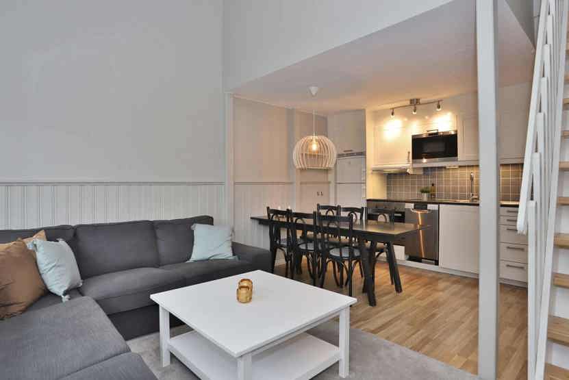 Stue med køkkenafdeling.